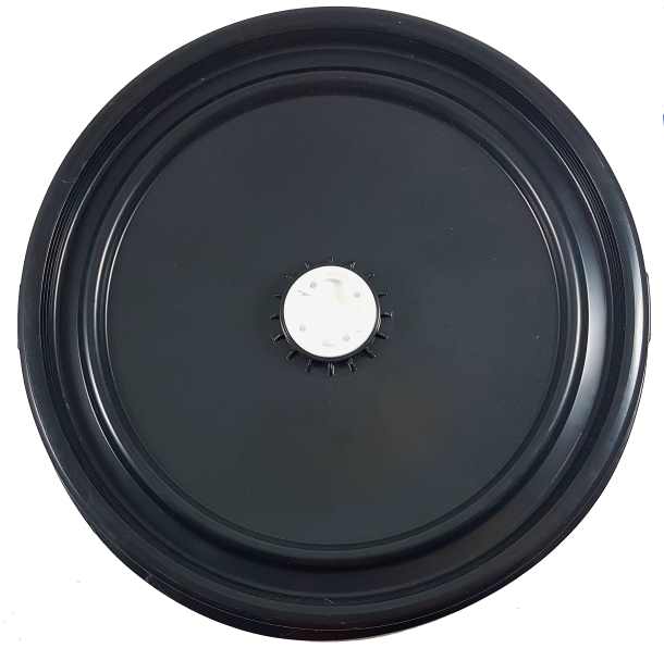 Deckel Ø 445mm mit mittig Spundstopfen 56x4mm - für PE Spannring Deckelf. 120/150 L